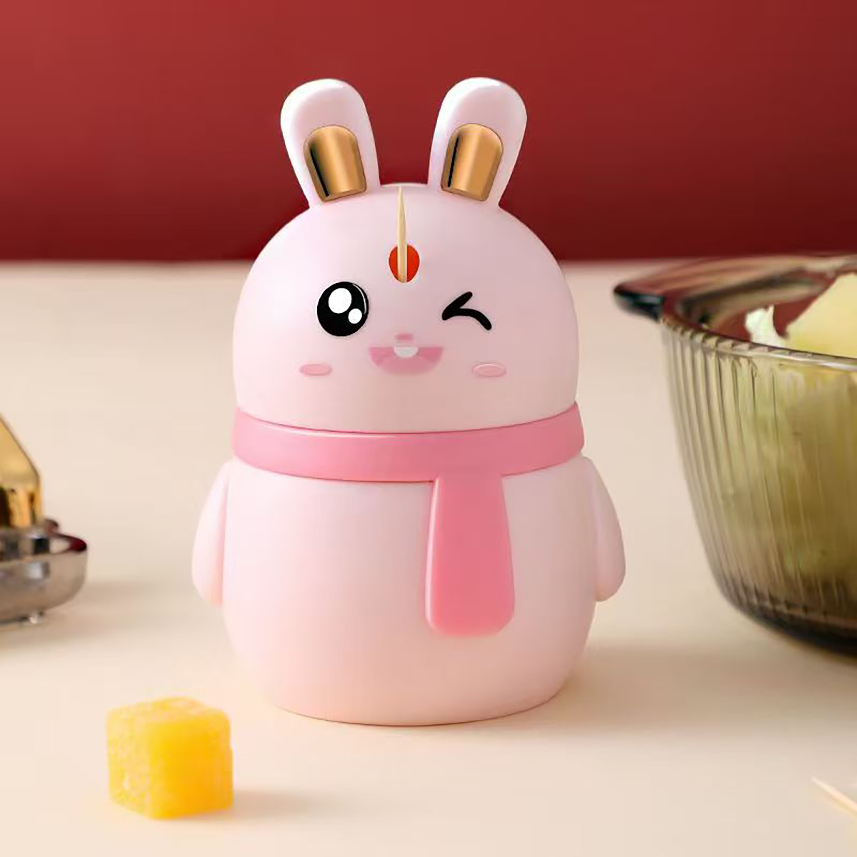 卡通小兔子按壓式牙簽筒