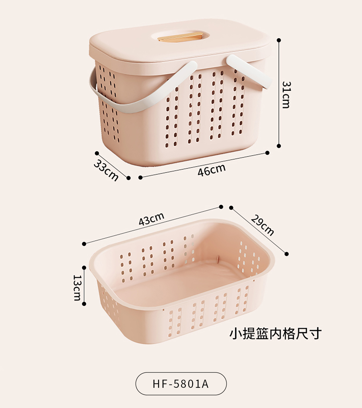 Size: HF-5801A(小提籃):460*330*310mm/內(nèi)格:430*290*130mm